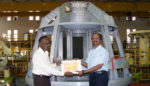 A cápsula de fabrico indiano agora apresentada pela agência espacial indiana ISRO HINDUSTAN AERONAUTICS LIMITED